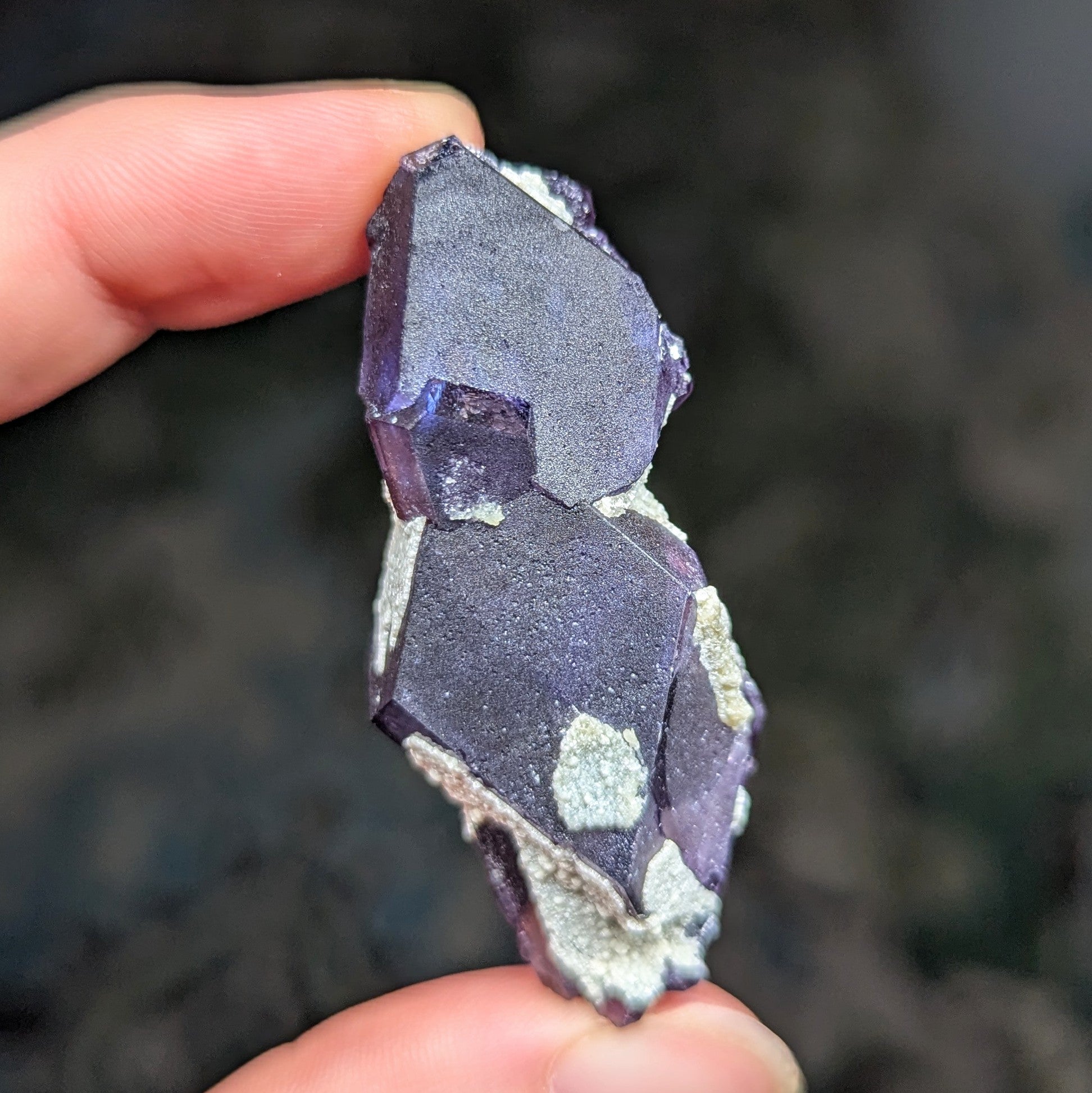 Here is a purple Yindu Fluorite with the more sought after "Elongated" growth pattern. The crystal exhibits elongated cubic growth, meaning the typical fluorite cube shape has been stretched or extended along one axis. You can see stacked, intergrown cubic faces, creating a rectangular-bar shape.