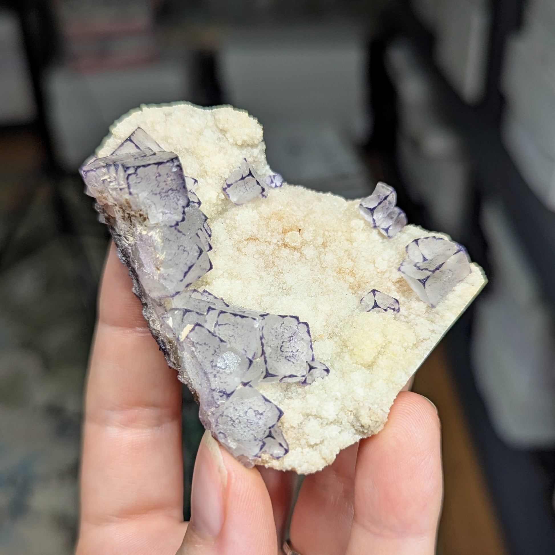 Original Outline Fluorite featuring light grey/purple cubes with a darker purple outline! On matrix