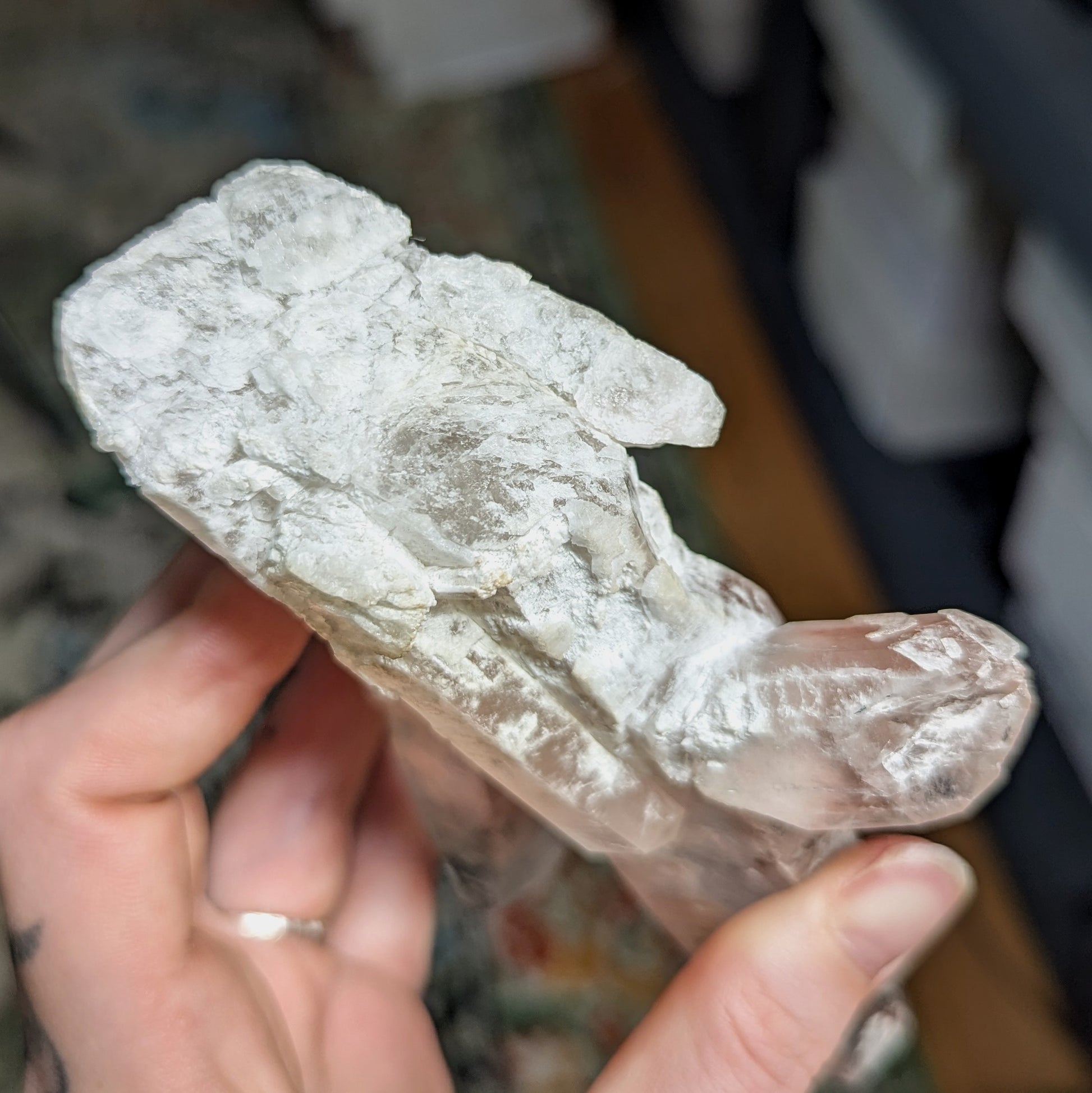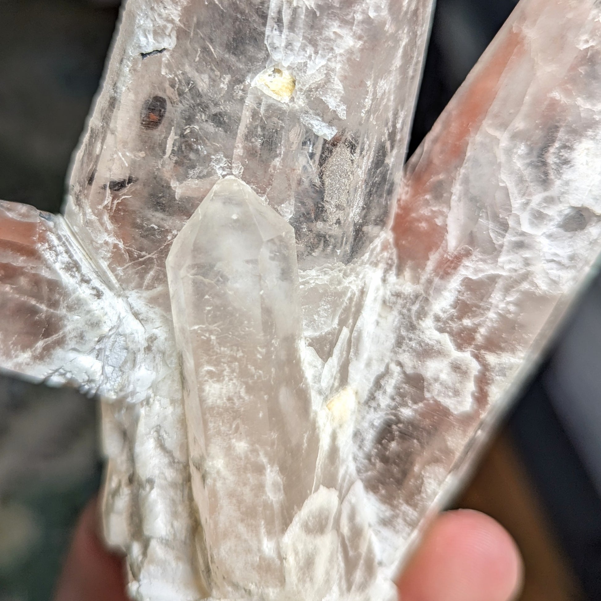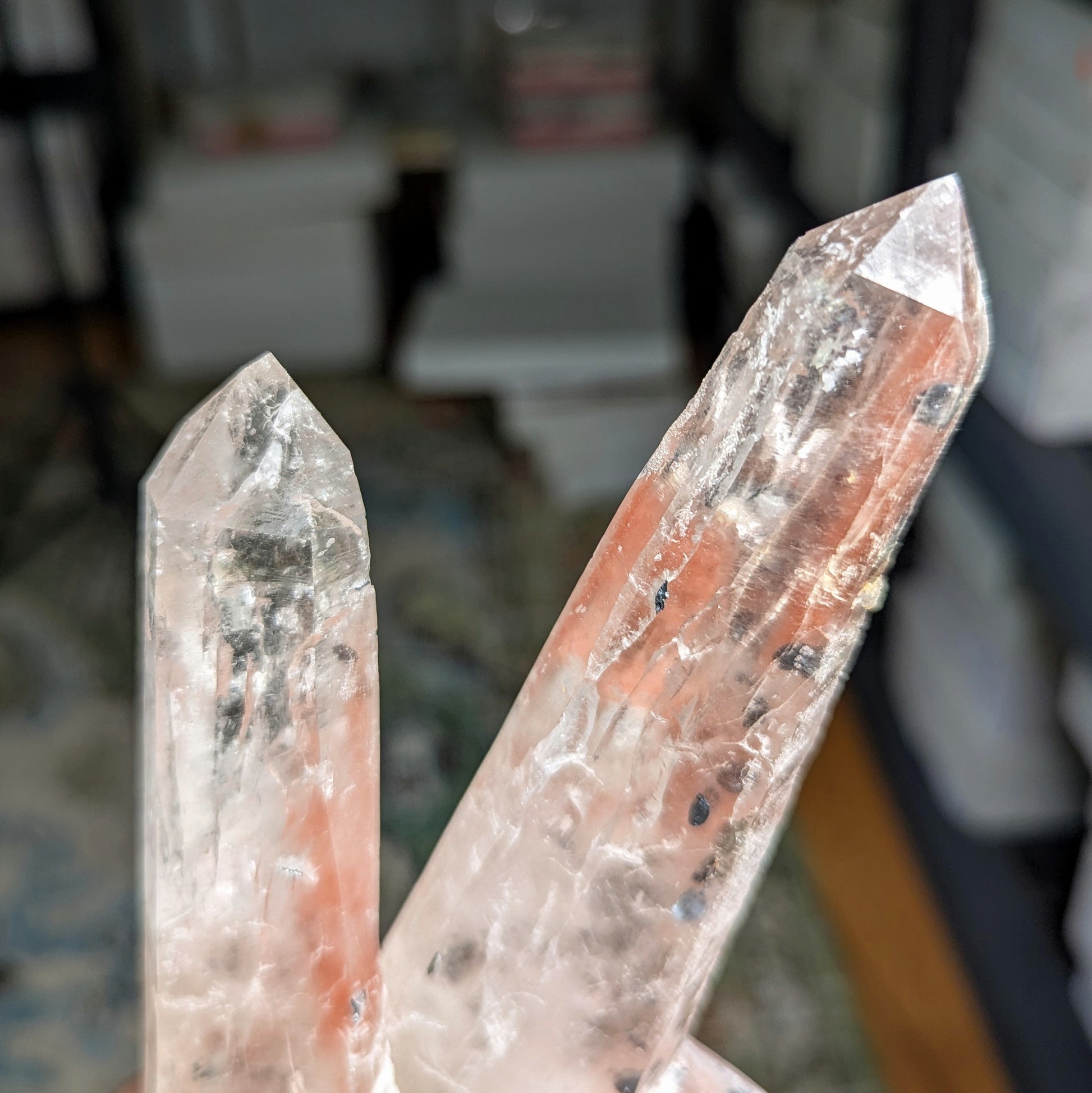 Large Red and Clear, Hematite Rosette included Quartz with healed bottom