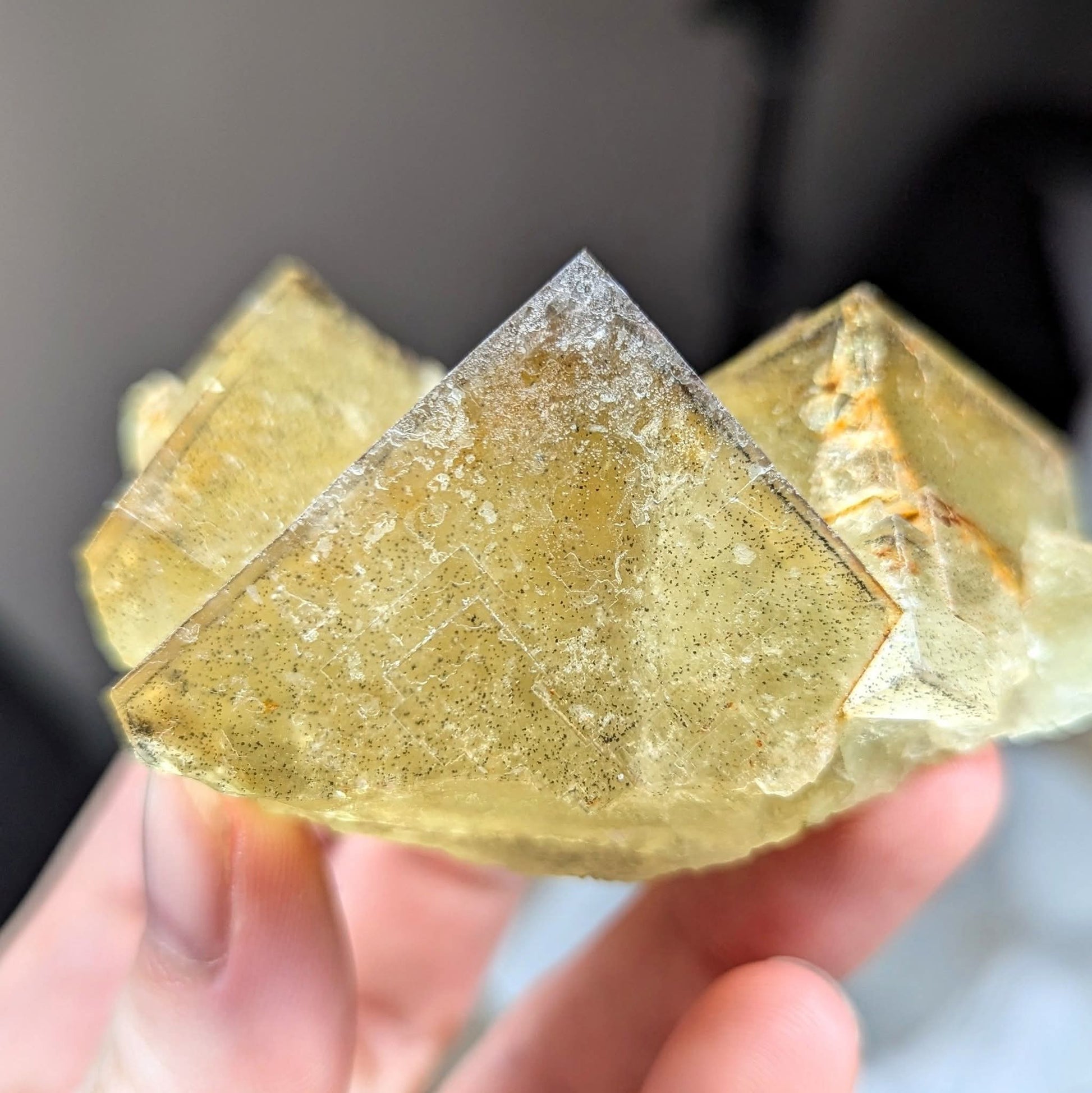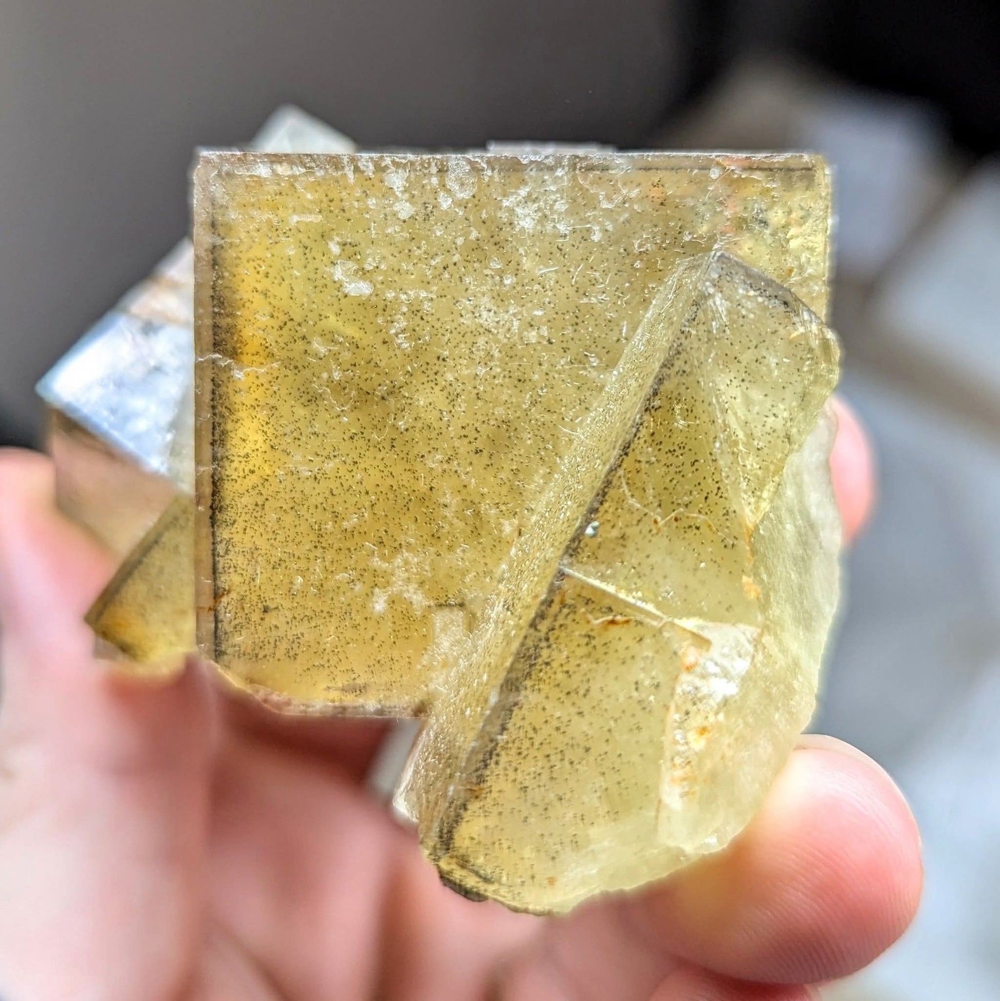 Excellent Yellow Cubic Fluorite with very defined, sharp outer zoning. Blue Spot on the back.